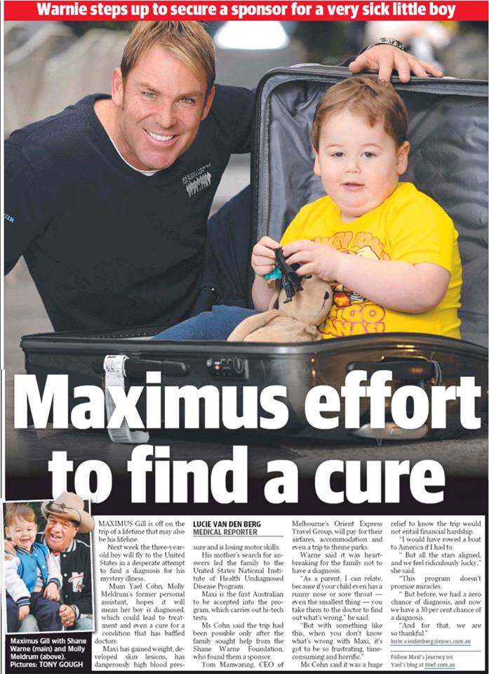 Genetics, Mystery Illness, Neurological, Pediatric medicine, Rare Disease, Royal Children's Hospital, Uncategorized, Undiagnosed, Undiagnosed childrenIt’s been a big week for Maximus, first appearing in this weeks New Idea Magazine, then was on Channel Seven news, and in the Herald Sun Newspaper paper, A huge thanks to everyone involved and a special thanks to the Shane Warne Foundation and Tom Manwaring who are sponsoring our trip to the Undiagnosed Disease Program. And huge thanks to all our wonderful supporters.