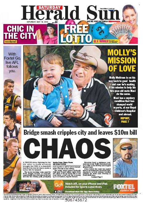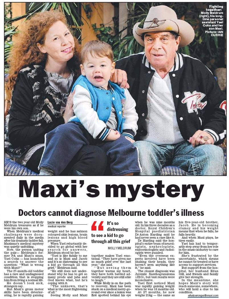 Uncategorized18th May, 2013 – Still no closer to a diagnosis for Maximus but a huge day for us in spreading the word. First we woke up to our baby boy on the front cover of the Herald Sun newspaper!